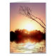 zonnerealistische reeksen : zonneschijn op de horizon van het silhouet van bomen die een energie-levensgloed geven die op water reflecteert ...
