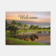 Een Doormat met een foto van Palm Trees en een meer tijdens een kleurrijke zonsondergang, gefotografeerd in SW Florida.