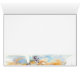 Een natuur thema blanco notitiekaart met bloeiende boomtakken getekend in zwarte pennen en inkt met een achtergrond van een bewolkte zonsonderganghemel in waterverf.