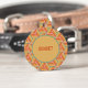 Dit funky kleine ontwerp verandert het ID-label van je pup in een totaal retro statement-stuk! Met gedurfde zonsondergangstrepen in terracotta, mosterd, blush en blauwgroen die een leuke 3D-kubus-illusie vormen, is het als een caleidoscoop van cool. Perfect voor stijlvolle pups die graag opvallen in het hondenpark - want waarom zou je basic zijn als je geometrisch en fantastisch kunt zijn?