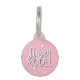 Grappig en leuk label voor je huisdier. Het zegt "Super Model" in leuke lettertypen met sterren in witte kleur tegen een roze achtergrond. Op de rug kunt u de naam van uw puppy en uw telefoonaantal toevoegen. Rendy en leuk design.
