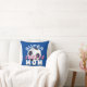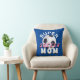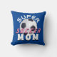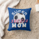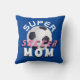 Blue Super Soccer Mam Sport Moeder Moederdag Pillow. Het ontwerp heeft een moderne typografie in roze en wit op een blauwe achtergrond met een voetbal. Geweldig geschenk voor een actieve sportieve moeder die van voetbal houdt.