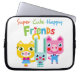 Onze Super Leuke Gelukkige het ontwerpeigenschappen van Vrienden de dierlijke vrienden, het varken, de kat, en het konijntjeskonijn en kleurrijk, prettekst die Super Leuke Gelukkige Vrienden leest.