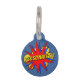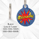 Geef je hond een superheldenlook met dit gepersonaliseerde label met hond-ID in stripstijl! Met een levendig komisch explosieontwerp kunt u de naam van uw huisdier of aangepaste tekst zoals POW! aan de voorkant toevoegen en contactgegevens aan de achterkant. Dit leuke en unieke op strips en pop art geïnspireerde hondenras label maakt gebruik van klassieke rode en blauwe kleuren.