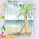 Baby aan boord! Baby shower uitnodiging - ideaal voor een baby shower in de zomer. Strand thema. Waterverf design heeft een oceaan- en strandscène met surfplank, palmboom en pet.