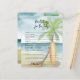 Baby aan boord! Baby shower uitnodiging - ideaal voor een baby shower in de zomer. Strand thema. Waterverf design heeft een oceaan- en strandscène met surfplank, palmboom en pet.