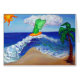 (Het schilderij is van een groene engel op een oranje surfbord dat een golf vangt. Een zon gloeit op de achtergrond en de palmboom zacht op het strand. De golf staat klaar om op het strand te botsen en het zanderige oppervlak te gladmaken. De groene engel brengt hulde aan de Archangel Raphael, wiens kleur groen is en bekend staat om zijn genezing. De zon draagt bij aan het leven en door de zon worden planten zoals palmbomen sterker en groeien. De kracht van zonne-energie wordt gesymboliseerd in het overeenkomende oranje-gele surfbord. Het strand is schoon en glad. Dit schilderij werd geïnspireerd door de "Wipe Out Cancer Angel". In plaats van het toevoegen van tekst van dit schilderij, werd het open verlaten zodat kunt u uw eigen veeg uit, die de golf in werking stellen, of andere gaan met stroombericht aan het strand, de wolk, of de hemel.