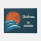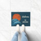 Creëer een persoonlijke welkomstmat die perfect is voor je strandhuis of een surf-achtige aanraking met huizen en appartementen die ver van de oceaan verwijderd zijn met deze coole, aangepaste welkomstmat. Deze deurmat is voorzien van een retro-achtige illustratie van crashende golven in tinten blauw met een gloeiende oranje zon boven en zeemijlen gedempt tegen de zon. De afbeelding heeft een stijl in nood die hem een , versleten uiterlijk geeft en die is ingesteld tegen een blauw marineklein. Met een crèmekleurige letters kunt u deze met uw eigen naam aanpassen.