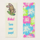 Onze schattige Hawaïaanse konijn, Coco houdt van de golven te surven bij Waikiki! Hij brengt de geest van "Aloha" met zich mee terwijl hij op deze magere bladwijzer zijn weg naar je hart surft. De achterkant van elk bladwijzer is de textielprint Epic Hibiscus. Deze nieuwe bladwijzer kaarten komen in aantallen van 20 in een handige kaart uitwerper hoesje. Pas het aan met je eigen gezegde of gebruik de onze.