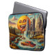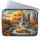 Surrealistisch stadsbeeld met antropomorfe zon laptop sleeve