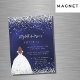 Een meisje en trendy Save the Date Card for a Sweet 16, 16th verjaardagsfeestje. Een blauw, oneven gekleurde achtergrond van de marine. Gedecorreerd met faux zilveren glitter en witte ballonnen. De tekst: Sparen de Datum wordt geschreven met een groot trendy hand lettered stijlmanuscript.