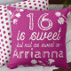 Sweet 16 roze, witte bloemen gepersonaliseerd kussen