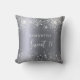 Een kussen voor een Sweet 16, 16 jaar oude meisjeskamer. Een faux zilveren achtergrond met faux glitter stof. De tekst: Sweet 16 wordt in wit geschreven met een groot modern, met de hand geschreven stijlmanuscript. Pas een naam aan en voeg deze toe.