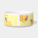 Zoete honingbijenkom met een zachte gele honingraatachtergrond. Ideaal voor zowel honden als katten.