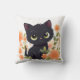 Sweet Black Kitten met Flowers Kawaii Chibi Kussen