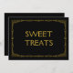 Eenvoudig en elegant kunstdeco-stijl "Sweet Tres"-trouwbord, op maat van uw eigen tekst, is voorzien van een gouden lijst voor deco-doeleinden boven een zwarte achtergrond. Dit 'Sweet Tres'-trouwerijbord ziet er geweldig uit op een mattepapier. Als je iets meer traditioneel nodig hebt, gebruik dan de Laid, Linen of Columned, als je een tikje glam wilt toevoegen, gebruik dan de Luxe. Het klikken op de "pas het"knoop aan u tot het redacteurshulpmiddel kunt toegang hebben en een verschillende achtergrondkleur kiezen. Dit is een vlak gedrukt 5-inch x 7-inch kaartbord, dat er echt elegant uitziet in een afbeelding lijst.
