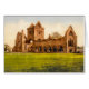 Kaart met een vintage afbeelding van Sweetheart Abbey in Dumfries, Schotland. Digitaal gereinigd, verbeterd en artistiek gerenderd om met waterverven op pen en inkt te lijken. De textuur van het perkament binnen, met een beschrijving op de achterkant, die luidt: "Sweetheart Abbey, in de buurt van Dumfries in het zuidwesten van Schotland, was een cisterciënzer klooster, gesticht in 1275 door Dervorguilla van Galloway, ter nagedachtenis van haar man John de Balliol." Verkrijgbaar in twee maten; witte envelop inbegrepen.