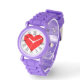 Een schattig Valentijn horloge met een rode glitter band en een groot felrood hart. Het horloge heeft een Romeinse wijzerplaat. Een leuk Valentijnsdag cadeau voor een kleine lieverd.