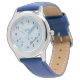 Het horloge van dit kind is bedrukt met een blauwe swirly star graphics op een lichtblauwe abstracte achtergrond, met eenvoudige zwarte cijfers, zeker om een klein meisje te behagen. Uw keuze uit verschillende bezel- en horlogebandstijlen