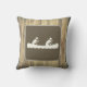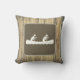 Robuuste en avontuurlijke werpkussens met een kanoesymbool net als een die langs de snelweg of langs de weg ziet. Witte silhouet van twee personen die op bruin kanoën, met een oude houten achtergrond