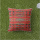 Het originele patroon van ZoeSPEAK op dit Sierkussen is gemaakt van een originele foto van takken op een jonge koninklijke poincianaboom. De bladeren lopen in nette rijen langs de dunne takken die het raamwerk vormen, de staf van de visuele symfonie. De bladeren zijn uitgevoerd in rode en goudkleurige tinten, met paarse stengels en aqua tegen een donkere achtergrond.