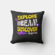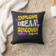 The design features striking typography, with "EXPLORE" and "DISCOVER" rendered in bright yellow and "DREAM" in white. The motivational words are accented by beautiful, high-contrast elements, including two stylized purple and white birds in flight and a bold purple feather. This piece is perfect for travel enthusiasts, adventurers, gap year travelers, nature lovers, or anyone who believes in the power of curiosity and chasing big dreams. It serves as a great reminder to constantly seek out new experiences and knowledge.
