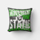 The design features a layered, high-energy composition. The word "MOVEMENT" is rendered in a distressed white font with energetic circular scribbles layered over it. This sits atop a mirrored, vibrant lime green block font. The central phrase "in the" is placed in a jagged, black-and-white splatter badge, while the word "STATIC" anchors the bottom in massive, weathered white block letters.