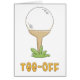 Een golfbal zit te wachten om te worden geraakt met een putter. "T-shirt-uit" in gele tekst hieronder.