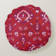 Tabatpatronen met kleurrijke rode en paarse ikat rond kussen