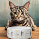 Een tafelkat kan worden herkend door een kenmerkende 'M'-vormige markering op zijn voorhoofd. Het heeft ook strepen in de buurt van zijn ogen, op zijn wangen, rug, benen en staart. Deze grijze en bruine kat was liefdevol met de hand getrokken W.B. met Prisma-kleuren. Afbeeldingen, achtergrondkleur en elke tekst kunnen indien gewenst worden aangepast of toegevoegd.