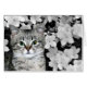 Silver tabby kitten in wit azaleas wenskaart, denk lente!