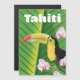 Tahiti Toucan reisprint met een paradijsvogel en bloemen.