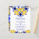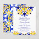 Talavera azulejo blauwe gele tegels vintage Mexicaanse bruidsuitnodiging budget uitnodiging betaalbare bruidsuitnodiging gedrukte uitnodigingen, mediterraan Italiaans blauw tegelpatroon Maiolica blauwe tegels Griekse tegels patroon bruidsuitnodiging kaarten