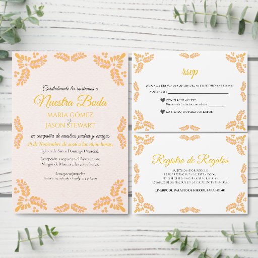 Talavera Yellow Floral Minimalist Spanish Wedding Kaart