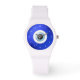 Ward van de slechte effecten van Evil Eye met dit amulet ontwerp met één kwaadaardig oog met zonnestralen tegen een blauwe achtergrond Het kwade oog is in staat om letsel of pech te veroorzaken voor de persoon op wie het is gericht om redenen van afgunst of afkeer. Bescherm tegen vloek van het kwade oog met dit gelukkige charmeontwerp slecht oog, kwade blik, het oog, oog van afgunst,