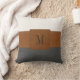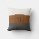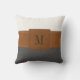Tan Leather Gray White Linen Farmhouse Monogram Kussen