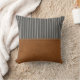 Tan Leather Striped Gray Linen Minimal Farmhouse Kussen