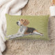 Deze prachtige lumbale kussen hebben een terugkerende zwarte, witte en beige Beagle tegen een lichte fern achtergrond.