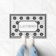 Deze schattige zwarte en witte, onechte teugel-doormat is perfect voor je waskamer. Zijn schone lijnen, eenvoudige kleuren, en patroon zijn tijdloos en veelzijdig. Deze mat bevat een geprinte vormig vormig folievormig ontwerp van een op rubber gebaseerd mat dat duurzaam en gemakkelijk schoon te maken is.