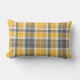 Gestreepte, vlakke, tartan-patroon in zwarte, gele en grijze tinten.