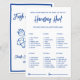 Voeg speelse energie toe aan je bruidsfeest met dit Handtasjacht-spel - een leuke tas-schattenjacht ontworpen in een frisse blauw-witte stijl als een verse markt.