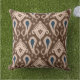 Taupe Dark Brown Navy Blue Ikat Tribal Pattern Buitenkussen