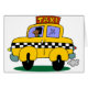 Heldere cartoon van gele taxi en driver. Ideaal voor stuurprogramma's of bedrijven. Sommige punten hebben klantgerichte tekst voor uw telefoonaantal. Andere overeenkomende producten beschikbaar.