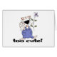 Een witte kat met bruine strepen met een lila bloem en tekst met de tekst "Te Schattige!" op kattent-shirts, mokken, knopen, tassen en meer.