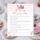 "Er is iets zoets aan het brouwen." Waterverf Tea Party Thema baby shower. Waterverf kopje thee, macarons, cupcakes en bloemetjes. Roze ruit.