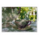 Een heerlijk schilderij. Tea time in de tuin. Een theebeker zit naast een zilveren theepot op een kant tafelkleed. De geappldeerde schaduw van een nabijgelegen boom maakt het uitnodigend. Een perfecte kaart voor elke keer. Het originele schilderij is slechts 7 x 5 inch
