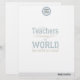 Stylish modern teacher personalized notepad with "Teachers change the world one child at a time" appreciation quote in black with a solid white frame.------------- Easy to customize with teacher;s name and subject.