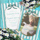Teal green graduation with trendy stripes and ribbon bow.