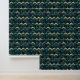 Teal Navy Gold Art Deco Fan Pattern Behang