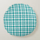 Teal White Checker Argyle Pattern Round Pillow